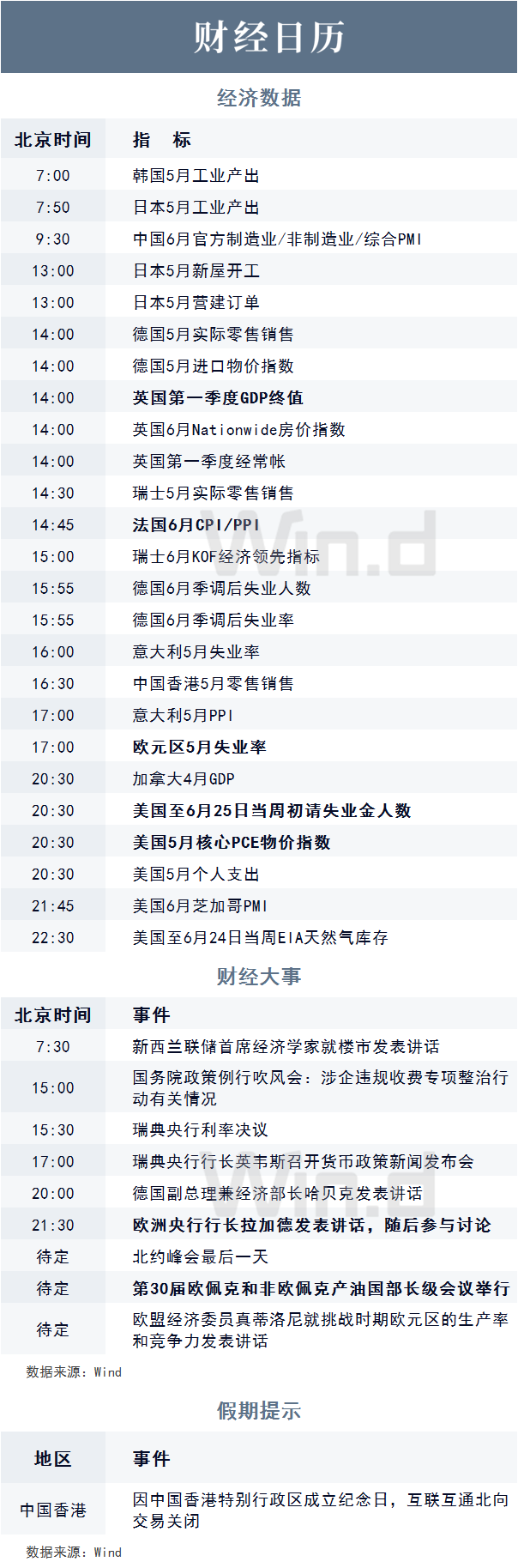 1、美国5月核心PCE物价指数年率 4.7%,低于预期