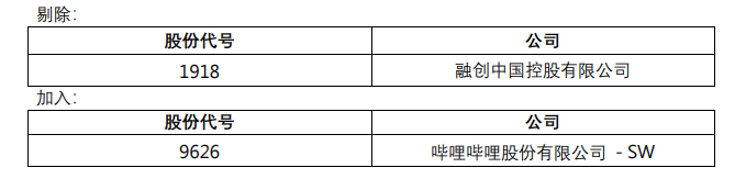 6月30日,恒生指数系列发布指数调整公告。恒生中国企业指数纳入哔哩哔哩。这些变动将于7月11日(星期一)起生效。