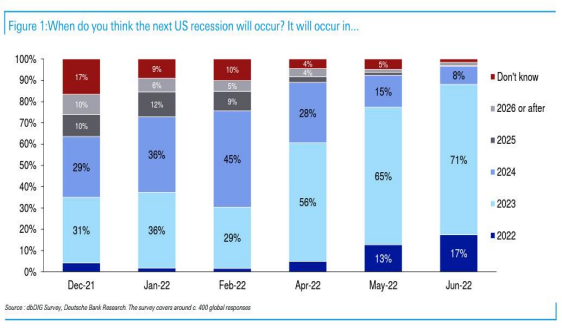 3、德银调查:88%的人认为衰退会在2023年底发生
