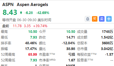 Aspen Aerogels盘前涨40%,公司宣布不发行新股和高级可转债