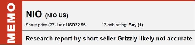 6月28日晚间,美国做空机构Grizzly Research(灰熊)发布报告称,蔚来(09688)通过会计手段夸大了收入和净利润率,从而达到市场预期。灰熊此举引发多家国际大行反驳,包括Morgan Stanley(摩根斯坦利)、JP Morgan(JP摩根)、Daiwa Capital Markets(大和资本市场)等机构,均发布报告称,不支持Grizzly Research的报告结论。