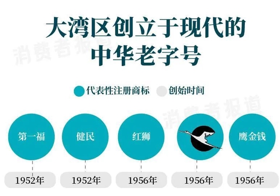 健民、鹤鸣、红狮、鹰金钱、第一福是历史较短的中华老字号,均为新中国成立以后创立。