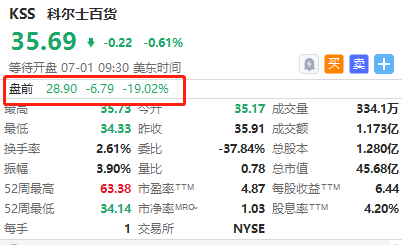 科尔士百货盘前跌19%,公司终止出售业务的谈判
