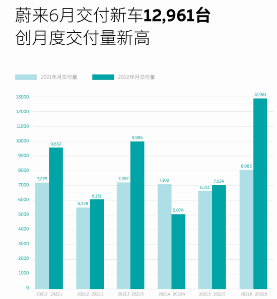 蔚来汽车:6月交付量为12961辆,同比增长60.3%