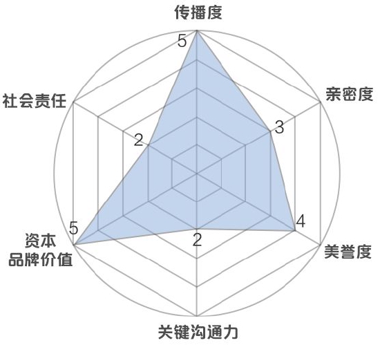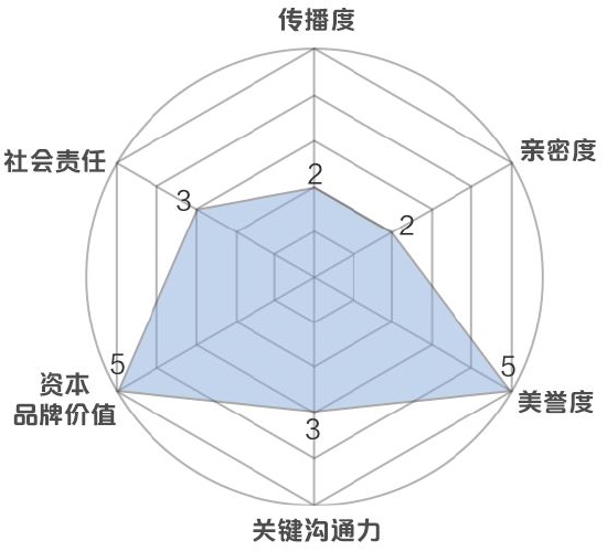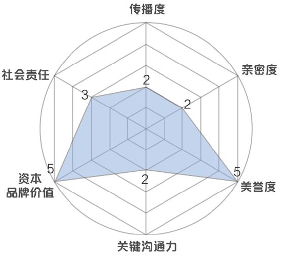 新浪财经品牌价值模型:传播度2分,亲密度2分,美誉度5分,关键沟通力3分,资本品牌价值5分,社会责任3分