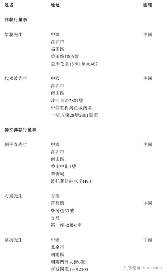 天图投资执行董事分别为王永华、冯卫东、邹云丽女士、李小毅;非执行董事分别为黎澜、代永波;独立非执行董事分别为刘平春、刁扬、蔡洌。