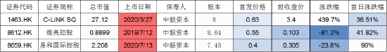 公司保荐人中毅资本保荐股票多为小市值股票,截至目前只保荐3家,首日涨幅都不错,但保荐的维亮控股上市2年已经暴跌逾80%,易和国际控股也跌24%,总部设于马来西亚的外判文件管理服务提供商C-LINK SQ至今涨幅依然有4倍多。而下跌的两只股票,维亮控股长期处于亏损状态,而易和国际控股2022年一季报净利下滑10%。