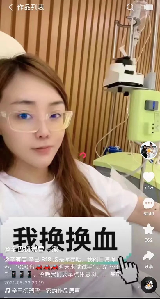 此前韩国影星宋智孝就曾在节目中向观众展示自己的“换血美容”;拥有超3000万粉丝的女网红、快手一哥辛巴的太太也在视频分享中展示过这一“保养”方法;医美平台新氧上也有人分享,表示“采取DFPP血液净化,改善身体机能,降低血糖以及血压值,清洁过滤血液中的杂质和脂肪。降低动脉硬化风险从而预防心梗和脑梗。”
