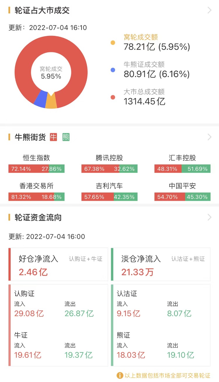 其中,窝轮总成交额为78.21亿港元,牛熊证总成交额为80.91亿港元。