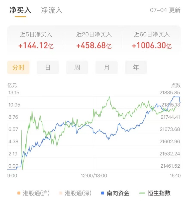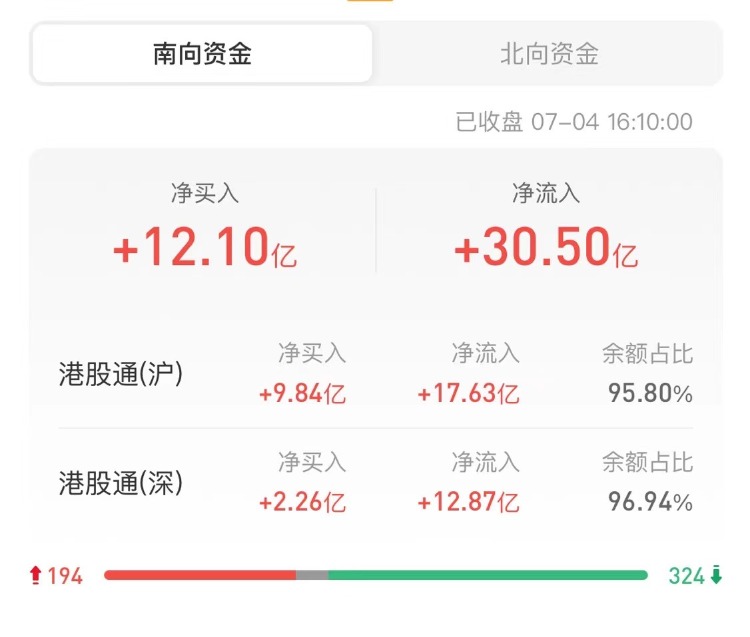 南下资金今日净买入港股12.10亿港元,其中港股通(沪)净买入9.84亿港元,港股通(深)净买入2.26亿港元。上一交易日净买入港股75.20亿港元。