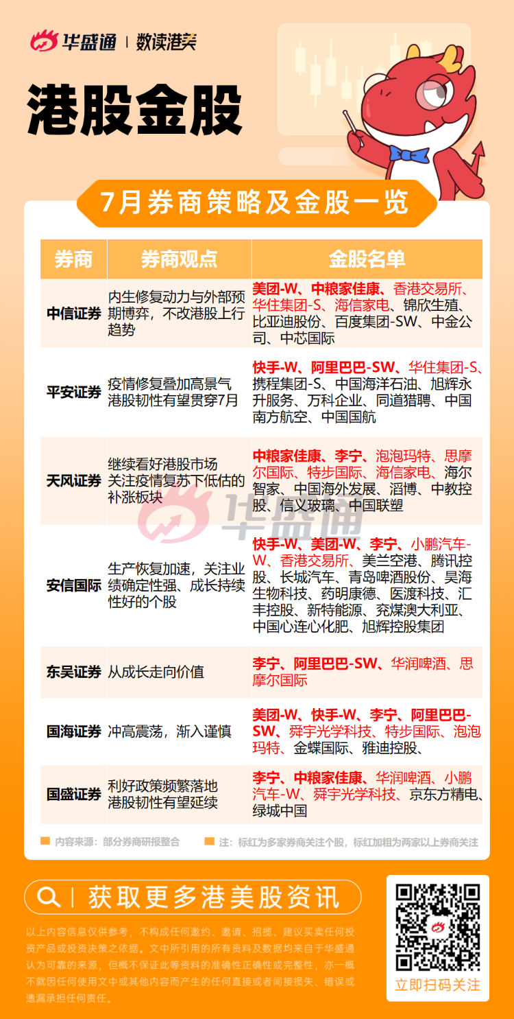 港股7月“翻身仗”打响,哪些金股值得加码?發仔整理了部分机构策略及金股名单,一起把握布局良机!