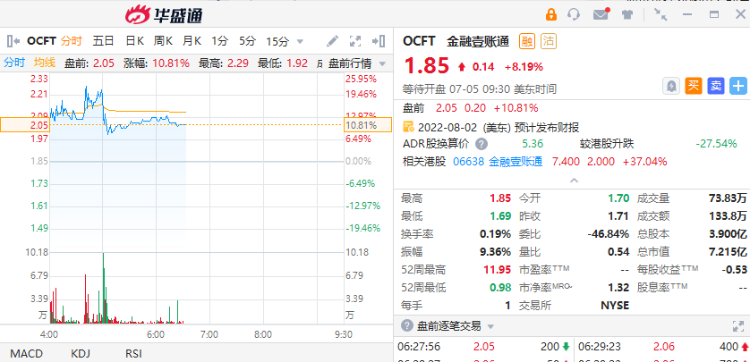 金融壹账通 $OCFT 盘前大涨近11% 昨日公司以介绍上市方式登陆港交所