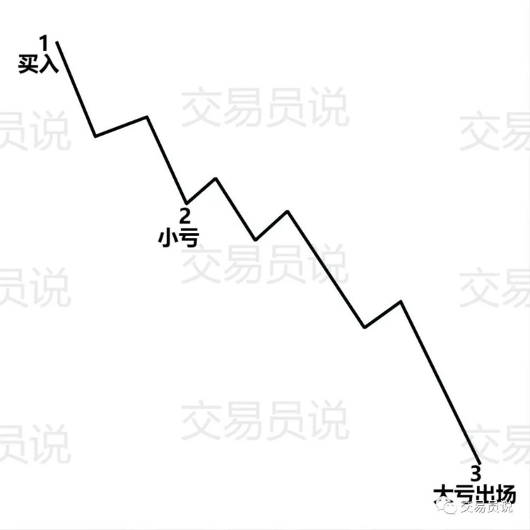 舍不得止损的交易行为,让我们亏钱出场的时候永远是亏大,因为我们的交易行为,导致我们投资交易会是小赚、大亏、小赚、大亏……读者若将账户净值数字连成曲线图,可以看出,就是一个空头走势。