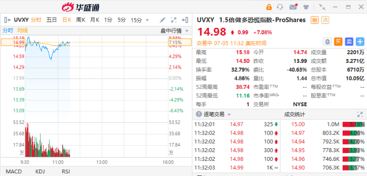 ETF方面,1.5倍做多恐慌指数 $UVXY 涨超7%,3倍做空纳斯达克指数 $SQQQ 涨近3%。