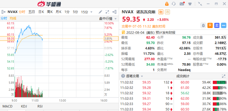 抗疫概念股走高,诺瓦瓦克斯涨近4%,报59.35美元,此前,公司预计可在今年第四季提供为奥密克戎BA.4和BA.5变异毒株量身定制的新冠疫苗。