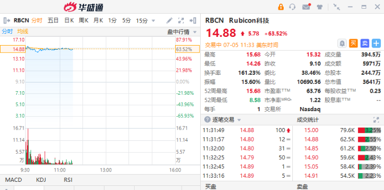Rubicon科技宣布与Janel达成最终的股票买卖协议。根据该协议,Janel 将以每股20美元的价格收购Rubicon最多45%的已发行股份。受消息刺激,Rubicon盘中暴涨逾63%,报14.88美元。