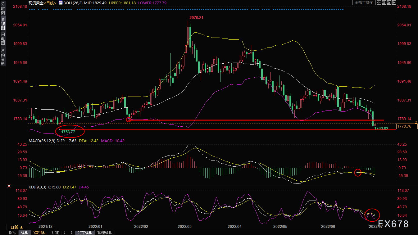 整体来看,经济衰退担忧,尤其是对欧元区经济衰退的担忧笼罩市场,美元大幅走高,是对金价打压明显,而且美元的避险买需直接替代了黄金的避险需求,这令黄金多头备受打击;而且金价在连续失守1800和1780两道重要支撑后,短线趋势依然偏向空头,金价可能会继续试探12月15日低点1753附近支撑,如果进一步下破,则增加后市看空信号;进一步强支撑在2021年8月低点1690.61附近。
