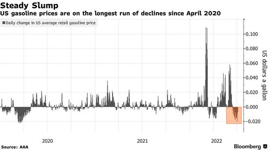 美国汽油零售价格已连续21天回落,这是自2020年4月以来最长的连续下跌。对于许多依赖汽车工作和出行的美国人以及试图降低燃料成本的总统拜登来说,油价的下跌可喜可贺。周二,纽约汽油期货盘中一度下跌超过30美分/加仑,跌至两个多月以来的最低点,基金经理持有的看涨期权相对于看跌期权而言是自11月以来最少的。