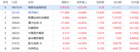 7月6日,港股制药与生物科技板块拉升走高。截至发稿,百济神州涨超9%,报117.8港元每股,盘中一度涨超14%;康方生物、和黄医药涨超4%,歌礼制药、先声药业跟涨。