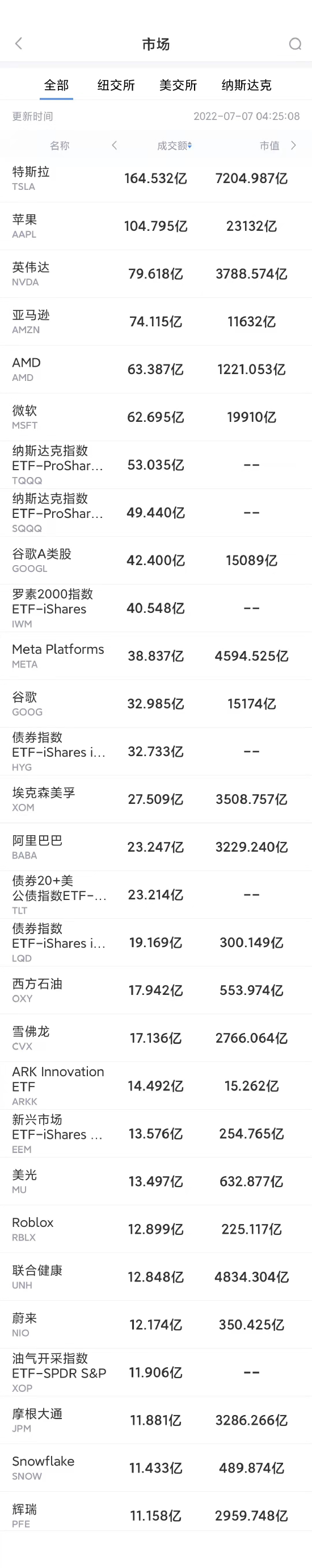 周三美股成交额冠军特斯拉收跌0.57%,成交164.5亿美元。根据乘联会的初步估计,特斯拉6月在中国的汽车销量达7.8万辆,环比增长142%,同比增长135%。数据表明,与4月份的不利情况相比,特斯拉的生产情况有了明显改善。