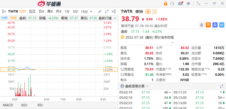 推特 $TWTR 盘前跌超4% 传马斯克收购陷入停滞