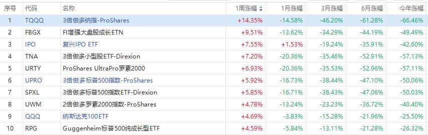 1、本周美股ETF涨幅榜