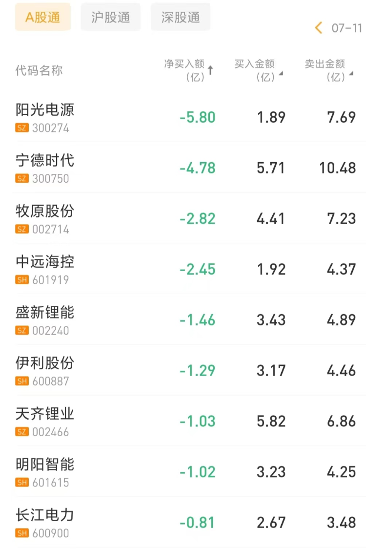 今日北上资金净卖出阳光电源5.8亿元,宁德时代遭净卖出4.78亿元。