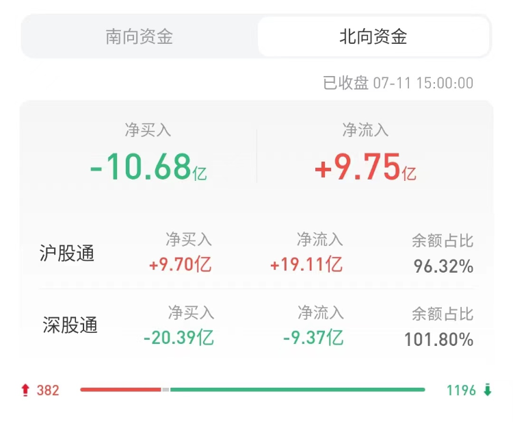 北上资金今日净卖出10.68亿元,沪股通净买入9.7亿元,深股通净卖出20.39亿元。上一交易日净买入12.36亿元。