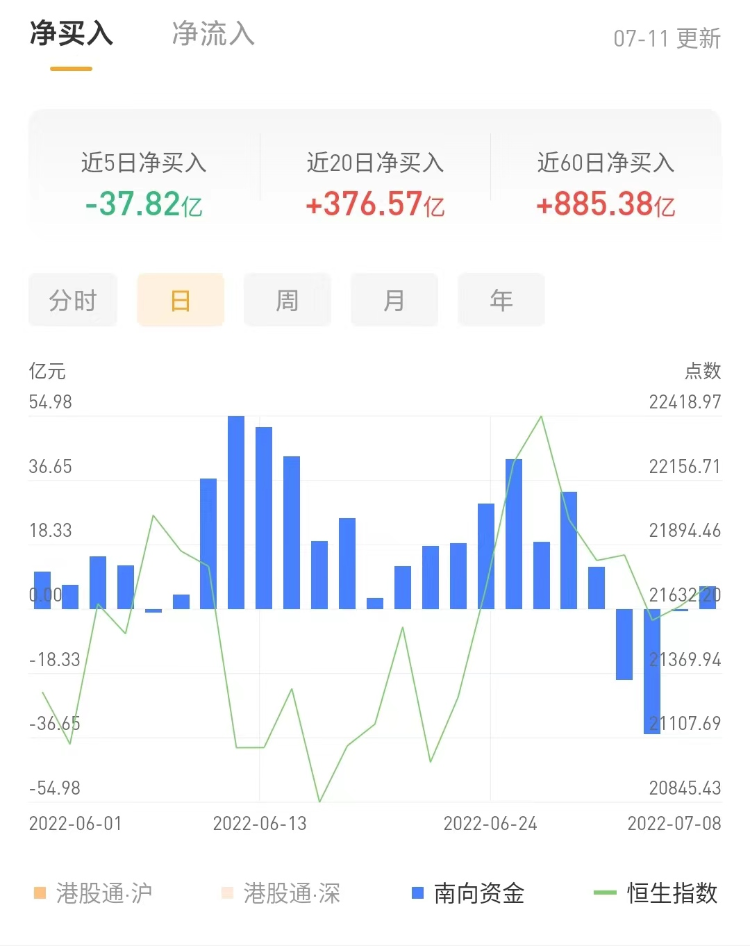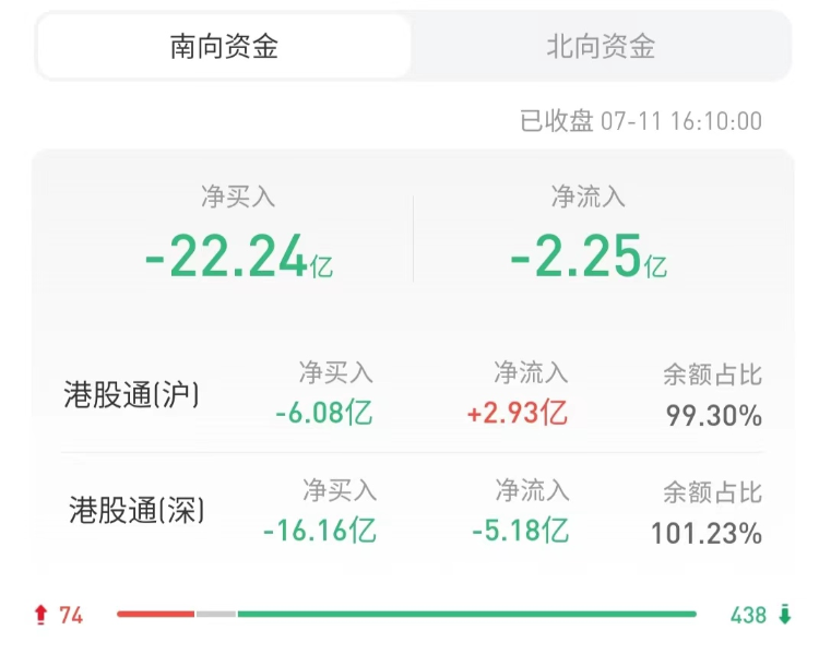 南下资金今日净卖出港股22.24亿港元,其中港股通(沪)净卖出6.08亿港元,港股通(深)净卖出16.16亿港元。上一交易日净买入港股6.54亿港元。