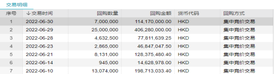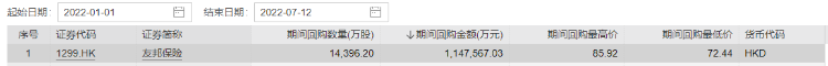 今年3月11日,友邦保险称计划在未来三年通过回购向公司股东返还高达100亿美元的资本。公司予3月21日启动了年内第一次回购;7月11日,友邦保险再回购195万股股份,共计耗资1.62亿港元。