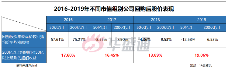 国信证券通过调研发现,当对公司市值大小进行区分时发现,200亿市值以上的公司相对于50亿元市值以上的公司又有着更为显著的超额收益。也就是说大公司的回购比小公司会更有超额收益;回购金额占总市值更大的公司,超额收益会增强。