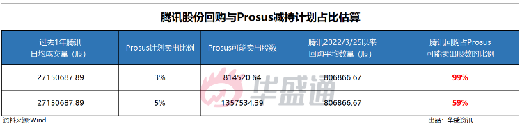 且从公司回购趋势与Prosus减持计划来看,如果按照腾讯过去一年的平均每日交易股数计算,Prosus承诺的每日交易不超过当日交易股数的3%—5%,分别对应的股票数量如下。如果我们保守假设腾讯每日回购的金额保持3亿港元不变,且假设腾讯股价不变,那么腾讯每日回购的股数可能是Prosus每日卖出股数的99%到60%左右。