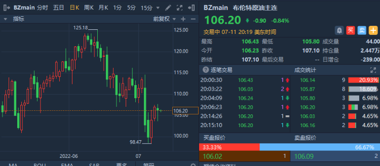 美油8月合约跌1.27%报103.46美元/桶,布油9月合约跌0.56%报106.42美元/桶。对全球通胀与疫情形势可能导致能源需求放缓的担忧导致原油期货价格下跌。此前拜登加大了游说欧佩克增加产量的力度,以遏制不断上涨的能源价格。他将于本周首次访问中东,其中包括访问沙特。沙特和阿联酋是仅有的两大拥有可观闲置产能的欧佩克成员国。官方数据显示,他们目前每天大约有300万桶的缓冲产量。