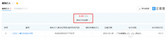 运营商财经网注意到,徐卫东离开后不久,中国铁塔揭阳分公司就于2022年2月末被广东省揭阳市榕城区人民法院列为了“被执行人”,执行标的6万元整,案号为(2022)粤5202执514号。