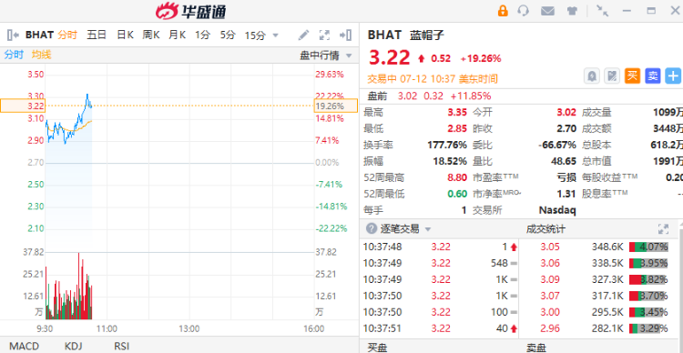 消息面上,蓝帽子周二表示,它与两家投资者达成了两项证券购买协议,以每股3.6美元的价格出售100万股股票,收益为360万美元。144万美元的第一批发行预计将于7月13日完成,剩余216万美元的第二批预计将于本月晚些时候完成。