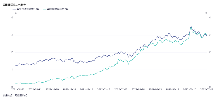 在美国债券市场,最受关注的潜在衰退风险指标之一已达到2007年以来从未见过的水平。基准10年期美国国债收益率跌至2年期国债收益率下方10个基点,超过了4月初达到的9.5个基点。越来越多的人担心美联储遏制通胀的措施可能最终导致经济陷入衰退,10年期美国国债收益率周二从6月中旬的约3.5%跌至2.91%左右,与此同时,2年期国债收益率在3.01%左右。相关产品:安硕核心美国国债ETF $GOVT