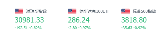 昨夜美股三大股指全天震荡,尾盘加速下跌。截至收盘,道指跌0.52%,纳指跌2.26%,标普跌1.15%。恐慌指数VIX收涨4.28%。