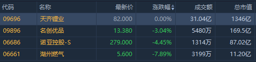 家居零售商名创优品 $09896.HK 首挂收跌3.04%,全日成交额超5480万港元。财富管理机构诺亚控股-S $06686.HK 首挂收跌4.45%,燃气分销商湖州燃气 $06661.HK 首挂收跌7.89%。
