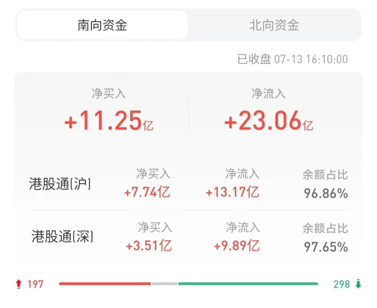 南下资金今日净买入港股11.25亿港元,其中港股通(沪)净买入7.74亿港元,港股通(深)净买入3.51亿港元。上一交易日净买入港股12.07亿港元。