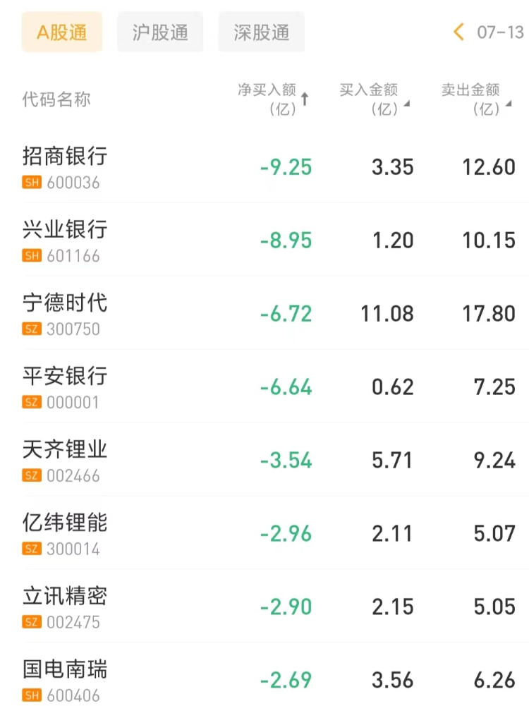 今日北上资金净卖出招商银行9.25亿元,兴业银行遭净卖出8.95亿元。