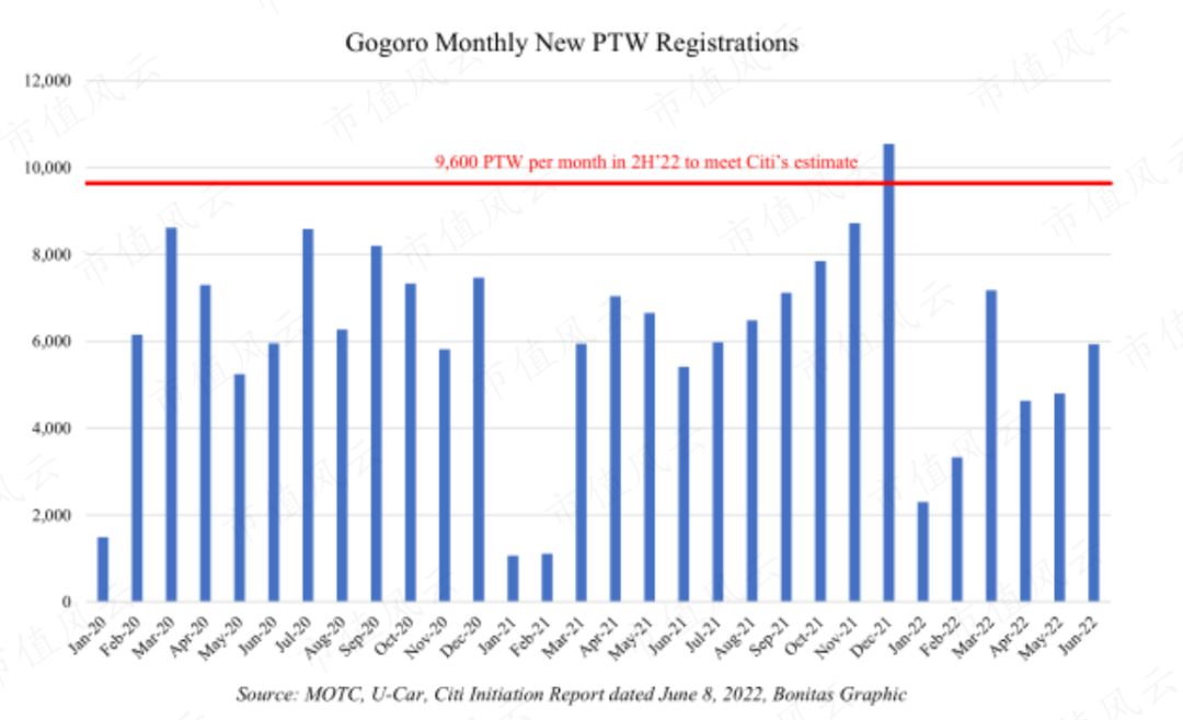 按照花旗的预测,公司在2022年下半年每月至少售出9600台电动自行车,才能满足这一目标。