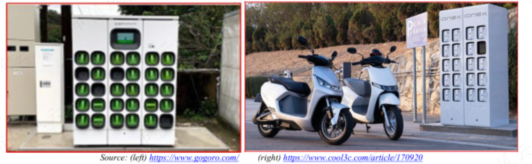 (左图:Gogoro换电机柜;右图:iONEX换电机柜)