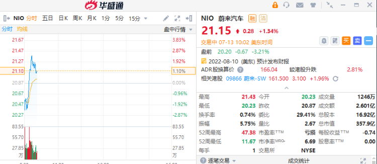 华盛资讯7月13日消息,美股开盘跳水后,中概股“蔚小理”逆势拉涨,截至发稿,蔚来汽车涨1.34%,理想汽车涨0.75%,小鹏汽车涨0.12%。