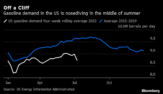 之前一周,汽油需求曾有温和增长,因为燃油零售商为7月4日长周末增加库存。但假日效应微乎其微且稍纵即逝,在经济增长放缓的担忧日益加剧之际,这些数字现在更加清晰地描绘了需求的萎缩。