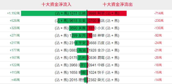 淡仓(认沽证及熊证)方面,周三比亚迪股份、京东集团、美团相关淡仓分别约1192万、526万及320万港元资金净流入;阿里巴巴、腾讯控股、小米集团等相关淡仓则分别约714万、230万及130万港元资金净流出套现。