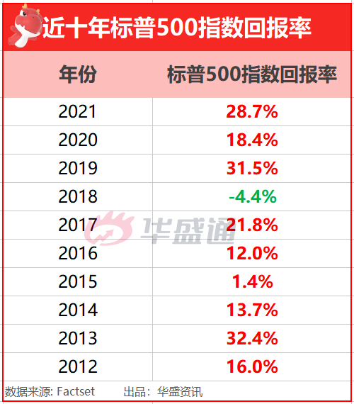 近期美股延续熊市疲弱,标普500指数 $SPX 今年已经下跌了20%,是近几十年来最糟糕的开局。回顾一下过去10年的标普500指数回报率: