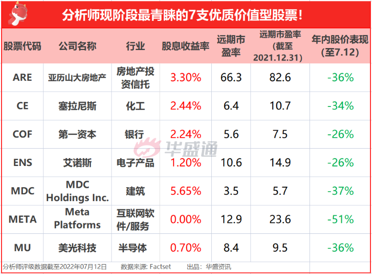 Buckingham根据自己对美股熊市的长期观点,列出了7支“便宜股”: