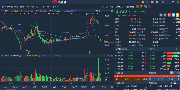7月12日,一则突如其来的业绩盈警发布后,中国中药(00570)股价应声下跌,盘中跌超16%。据公告,公司2022年上半年净利润预计同比下降50%-60%。