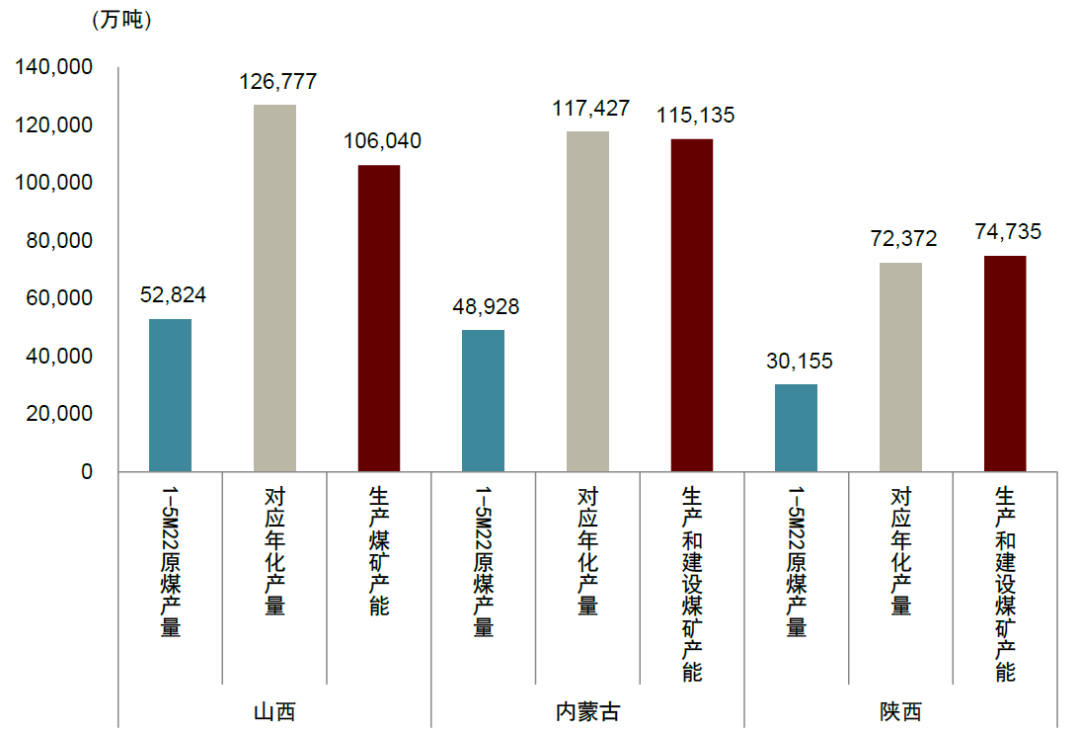 注:1)山西生产煤矿产能统计截至2022年2月末;2)内蒙古生产与建设煤矿产能统计截至2022年1月末;3)陕西生产与建设煤矿产能统计截至2021年末