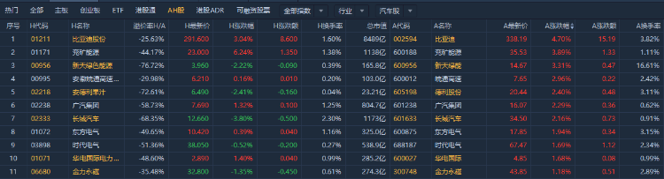 截至发稿,比亚迪A股涨4.70%,H股现涨3.04%;兖矿能源A股涨3.89%,H股现涨6.24%;新天绿能A股涨3.31%,H股现跌2.22%。